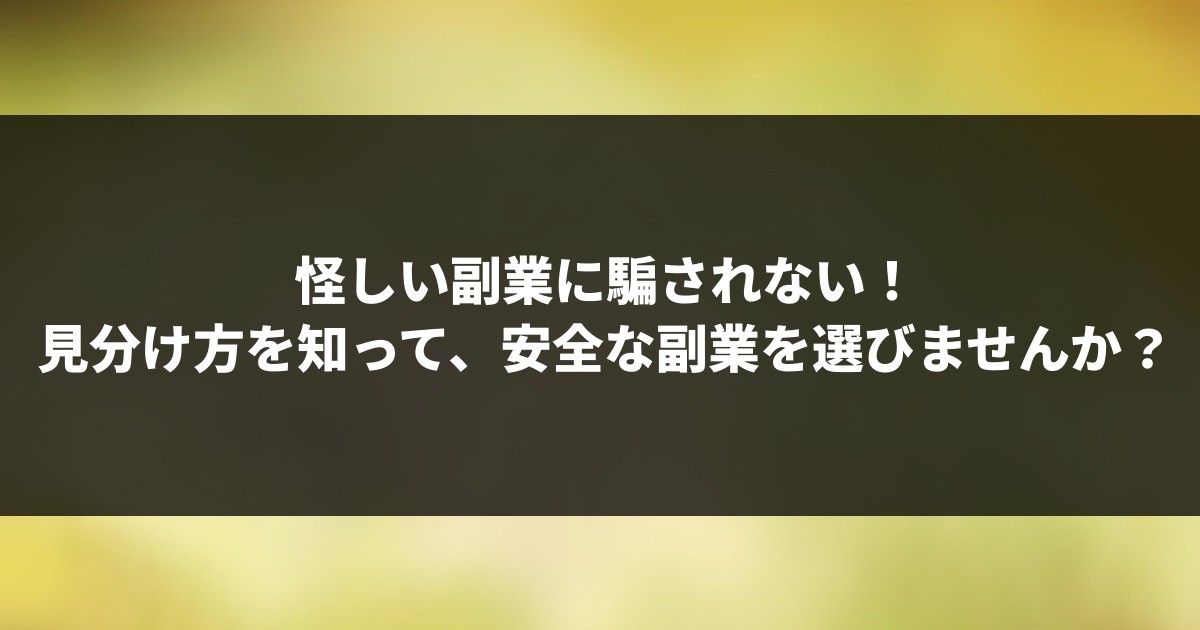 怪しい副業を避けるだけでなく、安全に始められる副業を選ぶための基準を理解することも大切です。