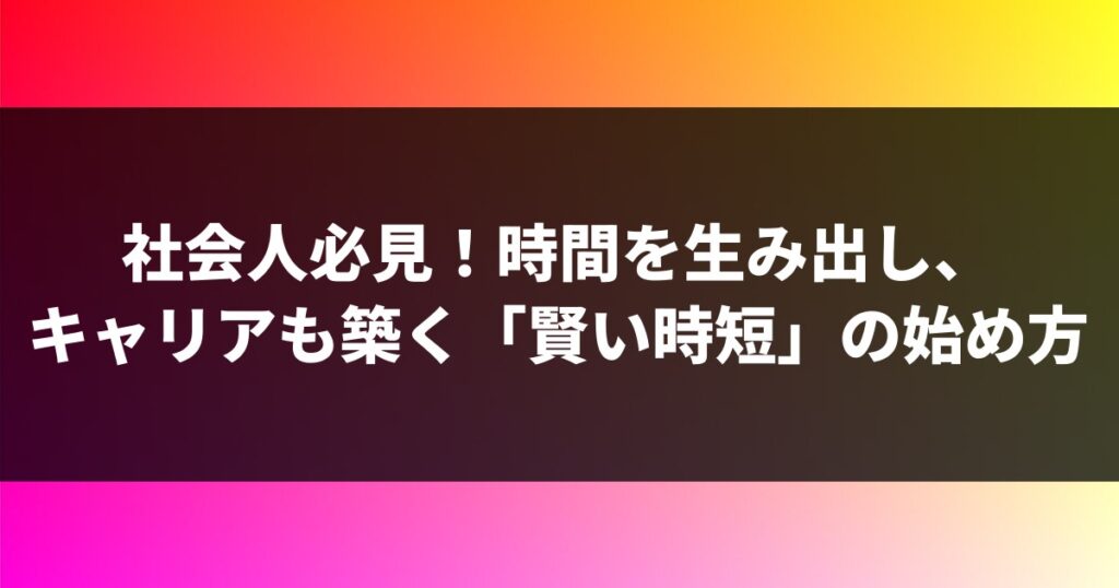 社会人必見!時間を生み出し、キャリアも築く「賢い時短」の始め方
