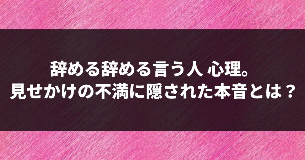 辞める辞める言う人 心理。見せかけの不満に隠された本音とは?