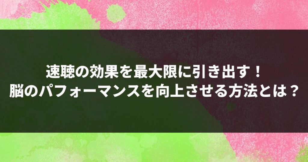 速聴の効果を最大限に引き出す!脳のパフォーマンスを向上させる方法とは?